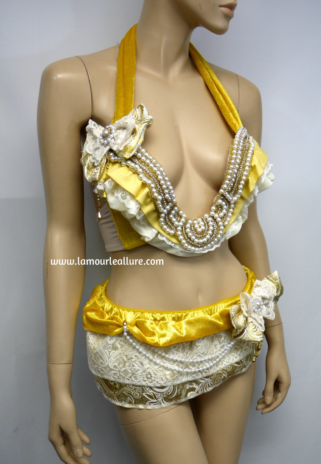 Beauty and the Beast Princess Belle Plunge Bra Costume Cosplay Dance Rave Bra Wear Halloween Burlesque Show Girl