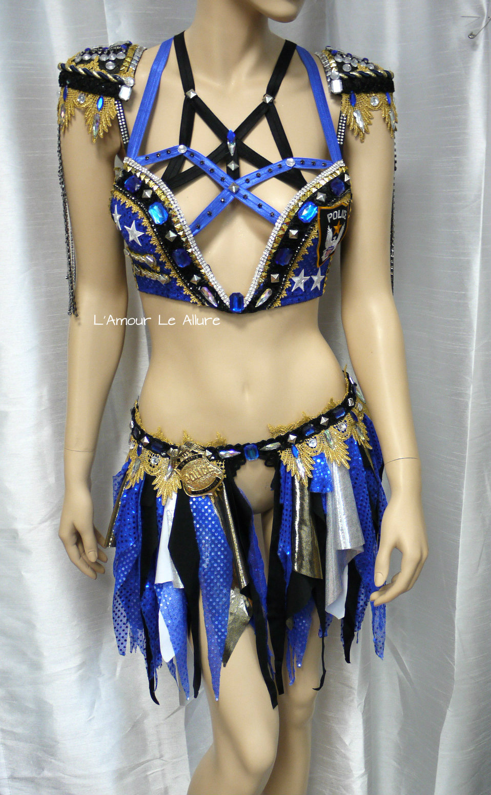 Premade Sexy Police Officer Cop Cosplay Dance Costume Rave Bra Rave Wear Halloween Burlesque Show Girl