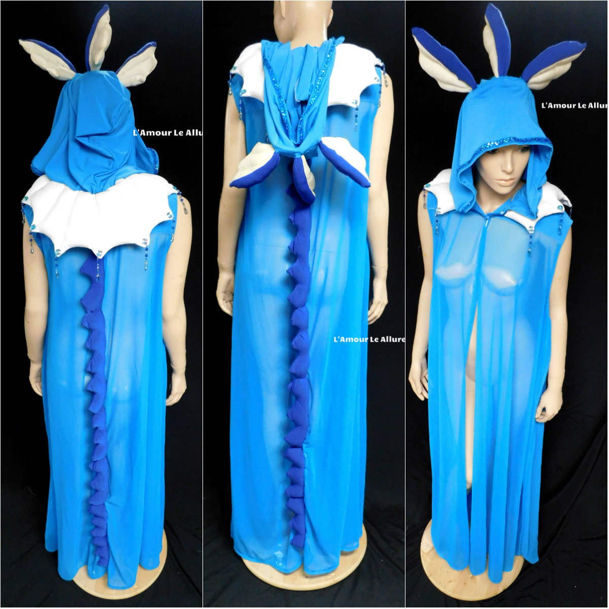 Vaporeon Ear Cape Robe Cosplay Dance Costume Rave Bra Rave Wear Halloween Burlesque Show Girl