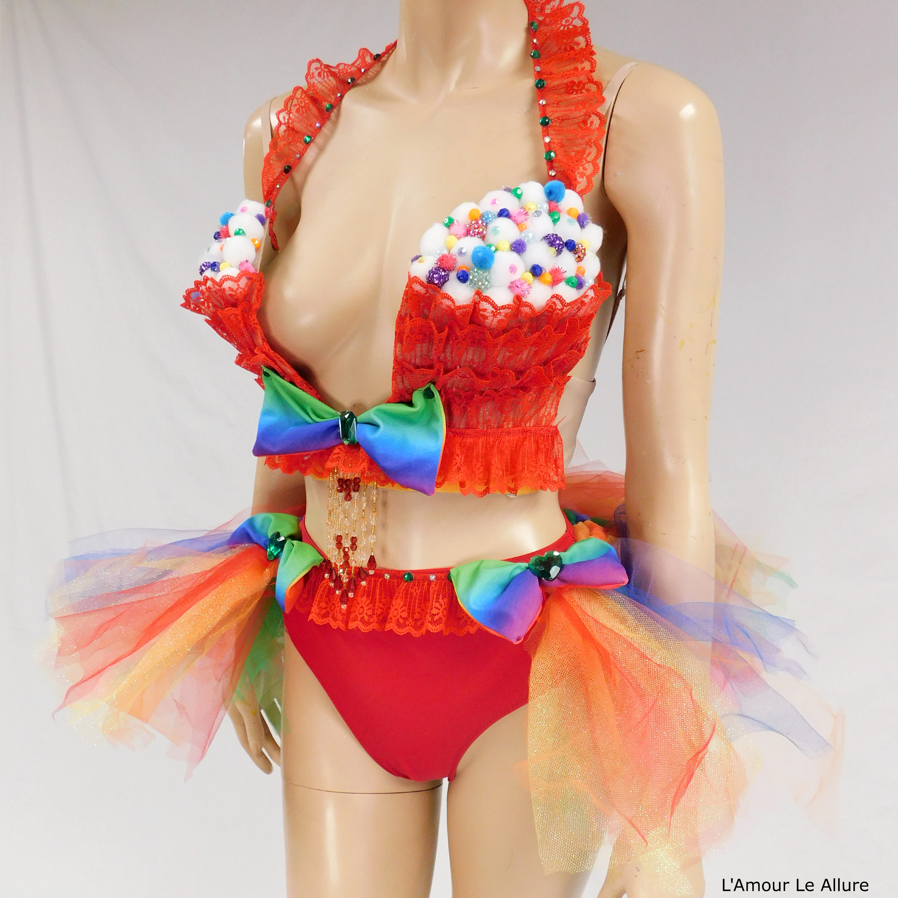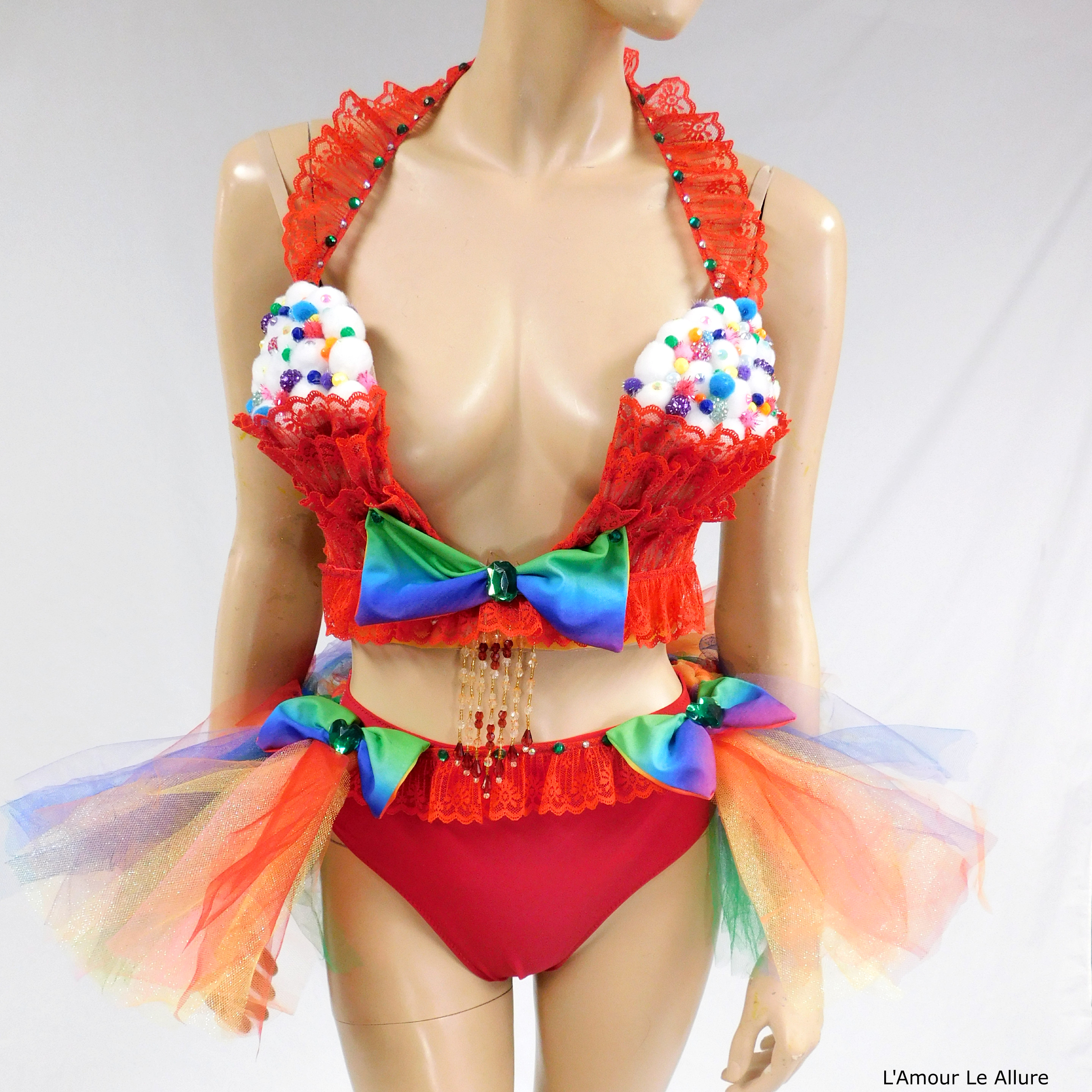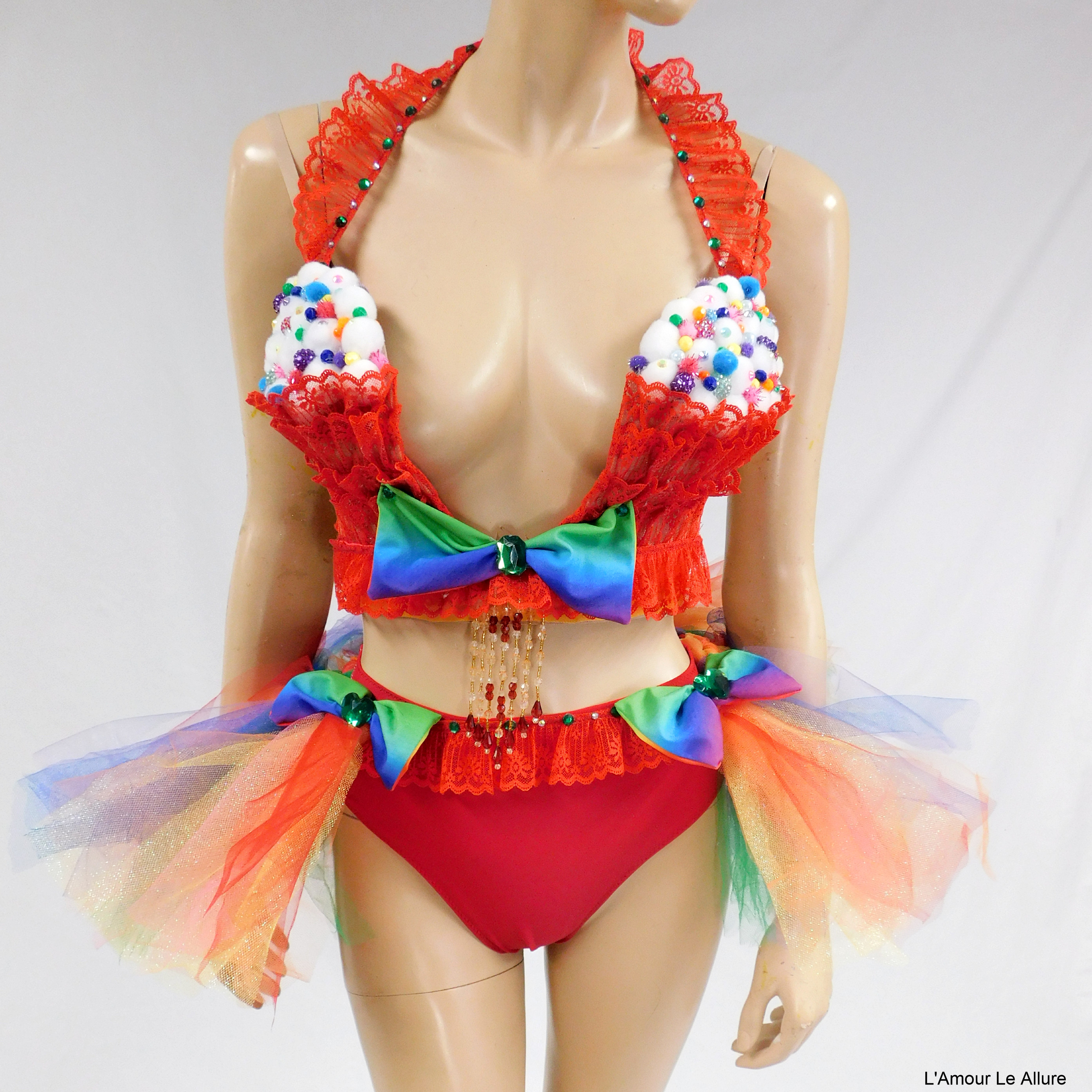 Red Cupcake Birthday Plunge Rave Bra with Tutu Bustle
