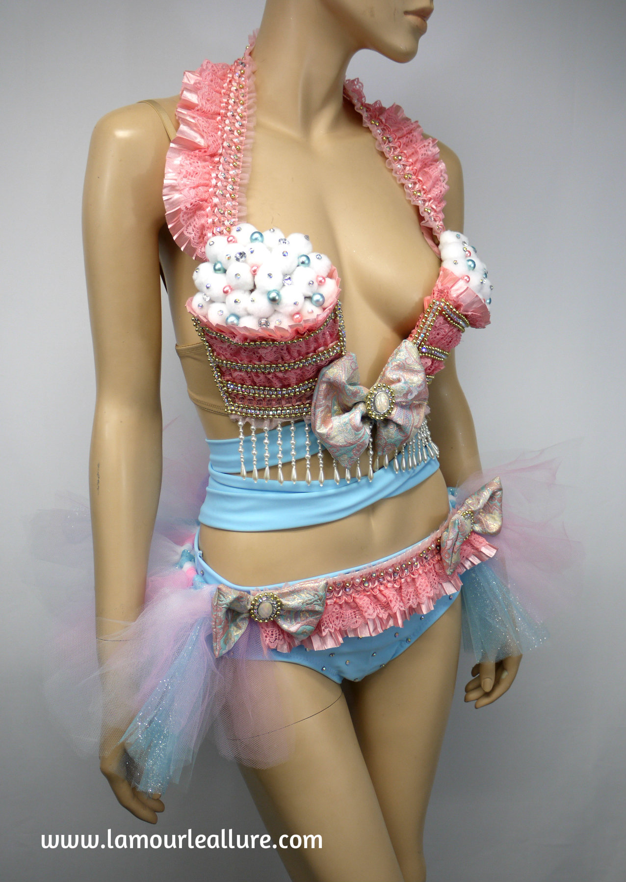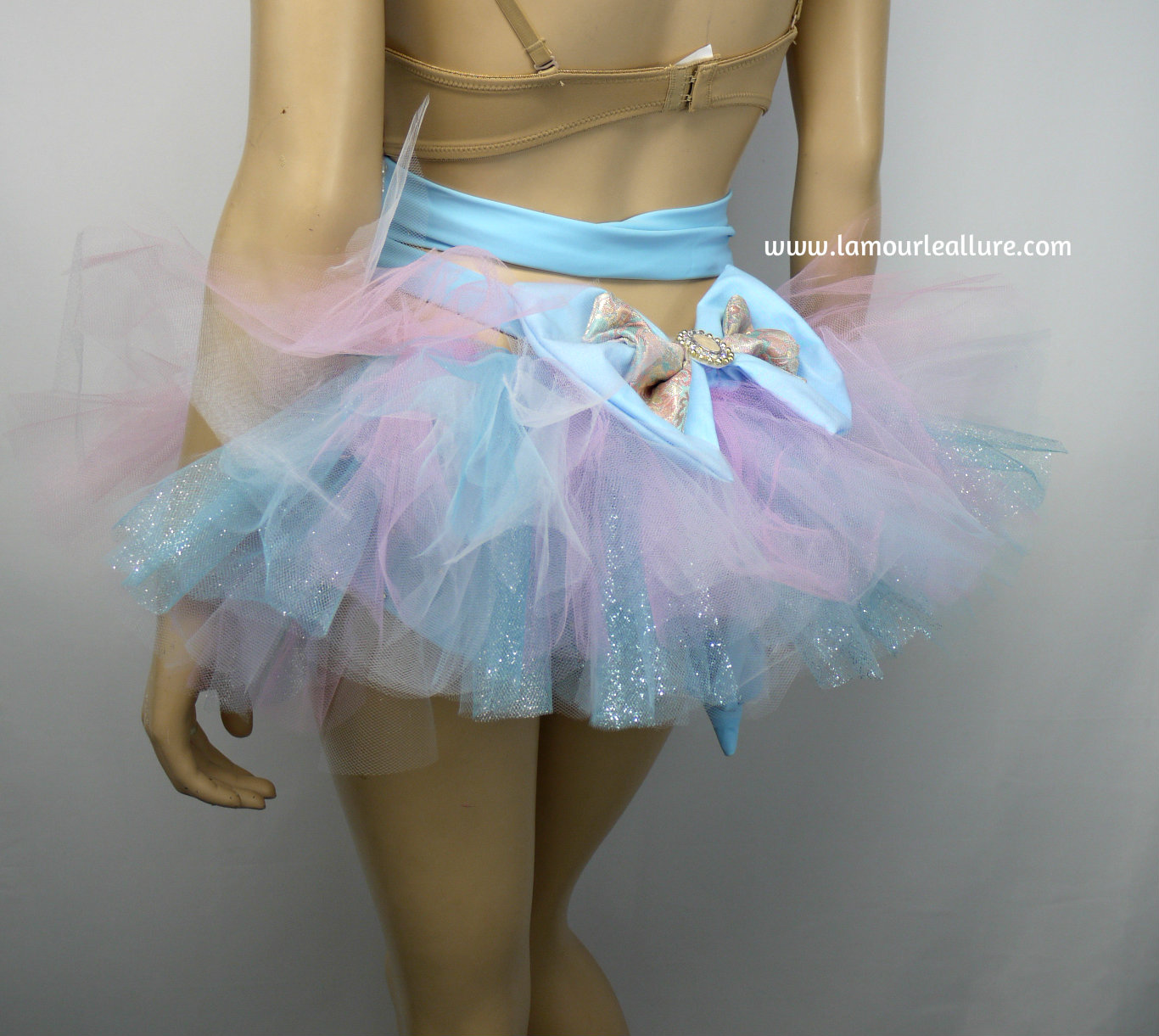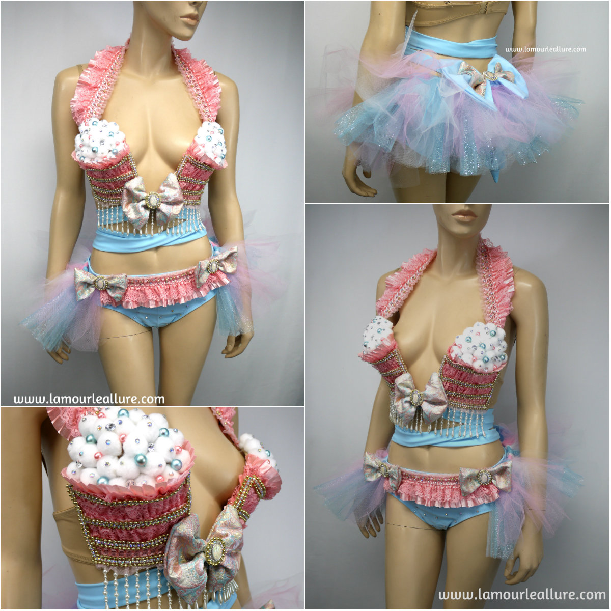 Pastel Cotton Candy Unicorn Princess Cupcake Birthday Plunge Rave Bra with Tutu Bustle Bottom and Rhinestone Shorts