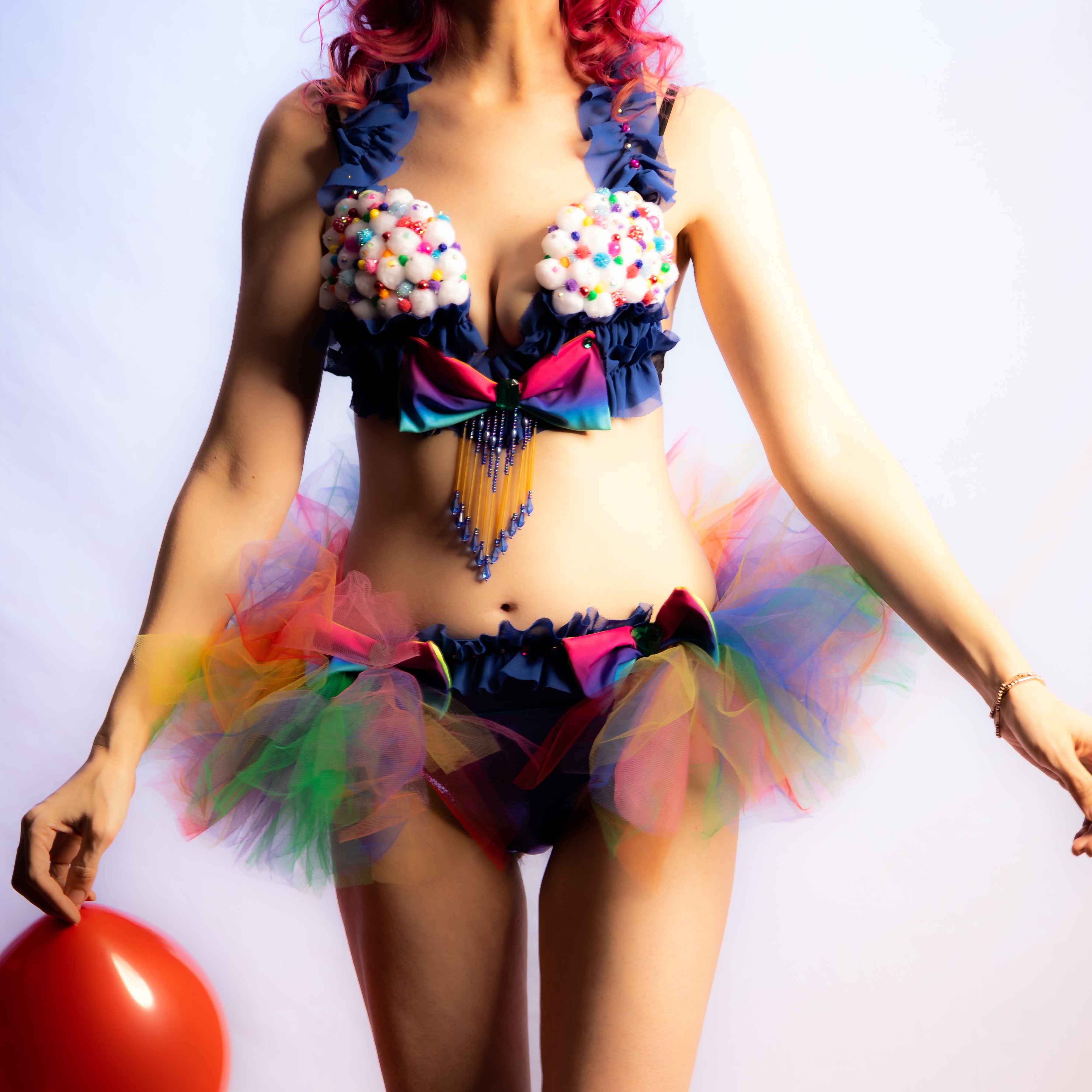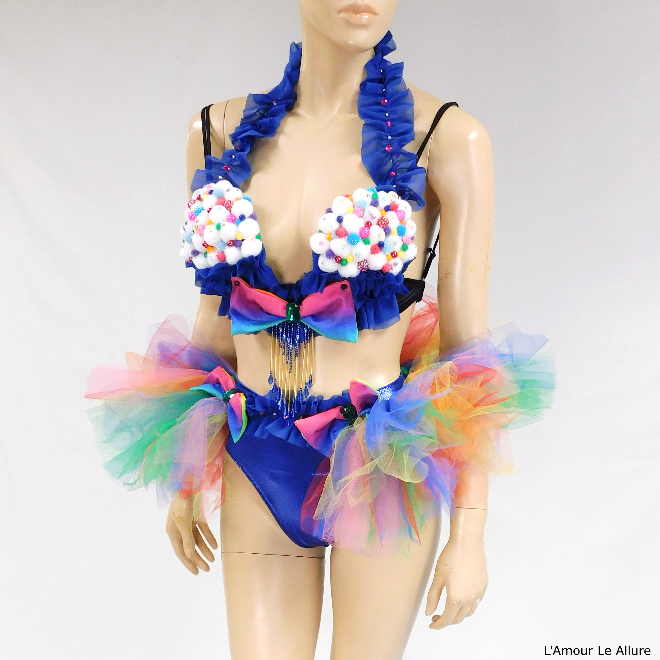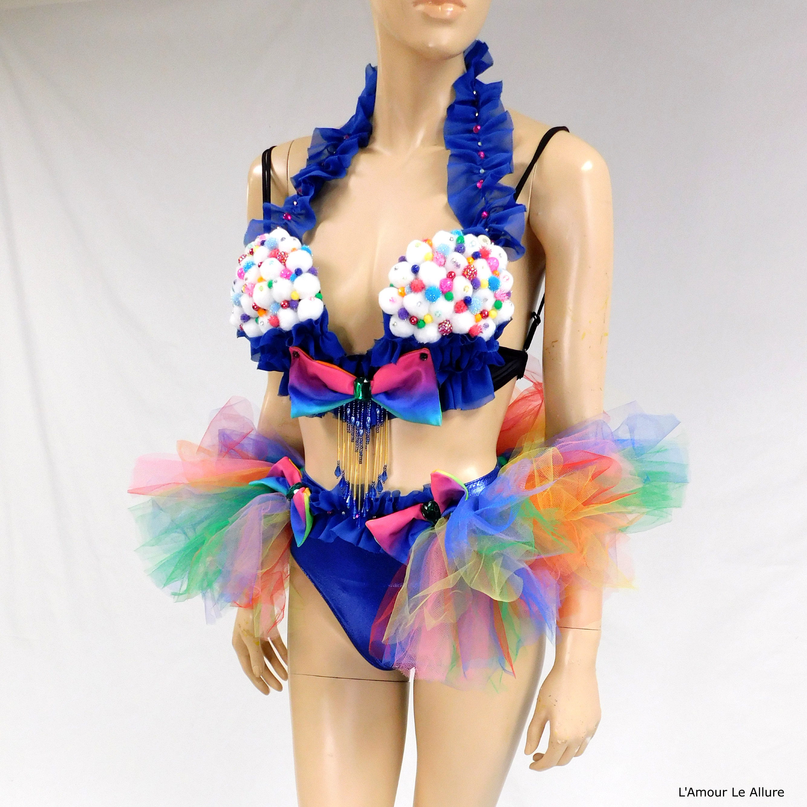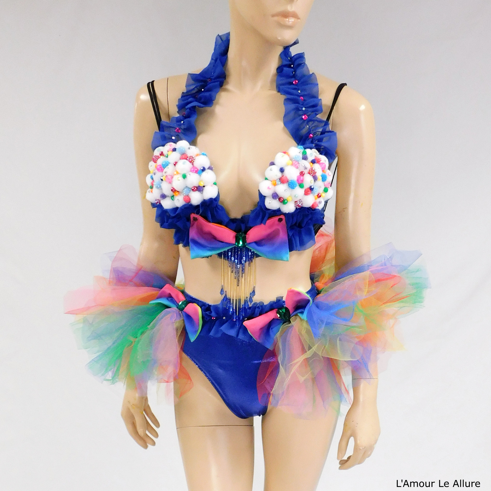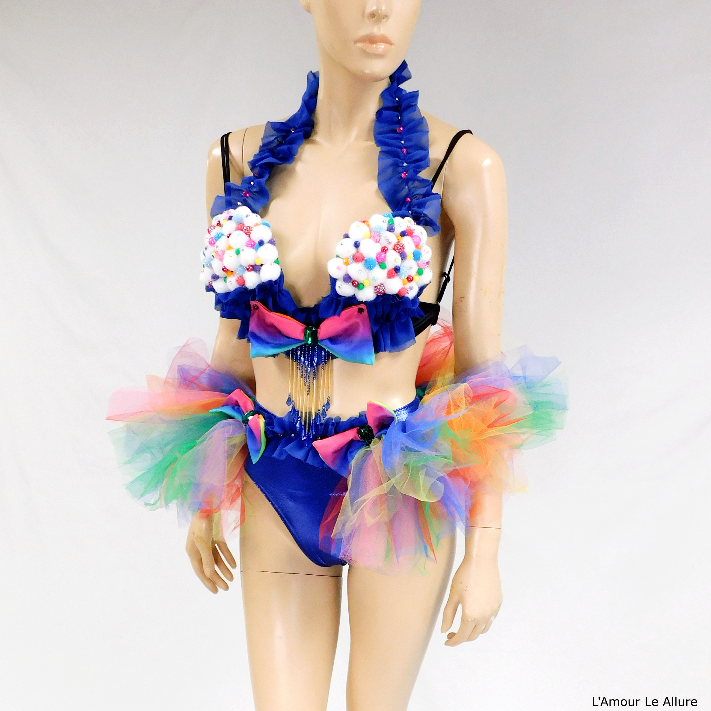 Blue Cupcake Birthday Plunge Rave Bra with Tutu Bustle