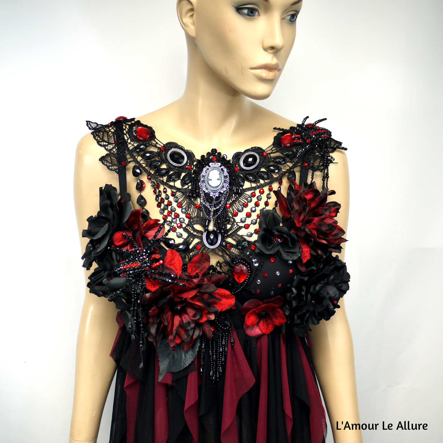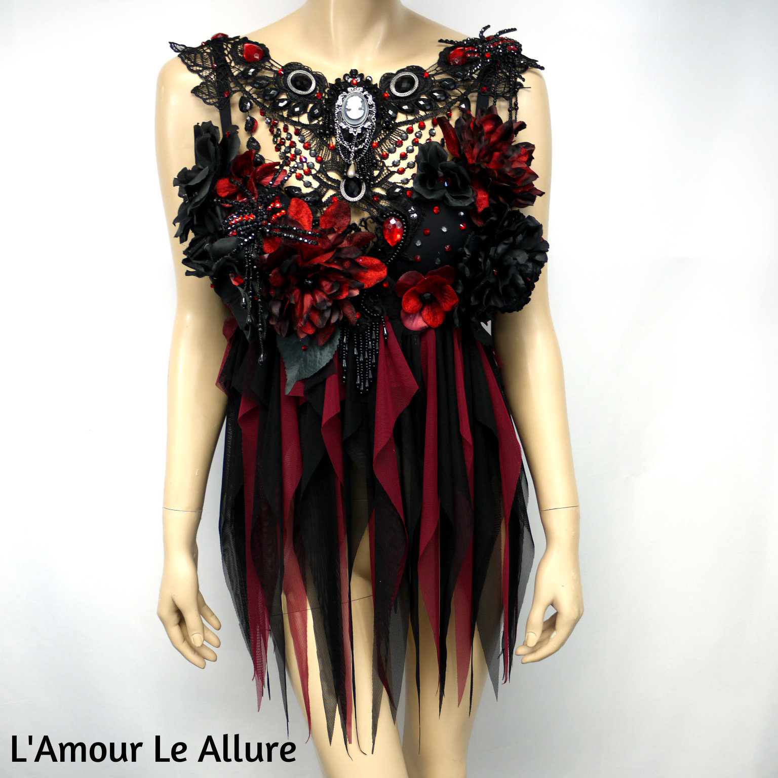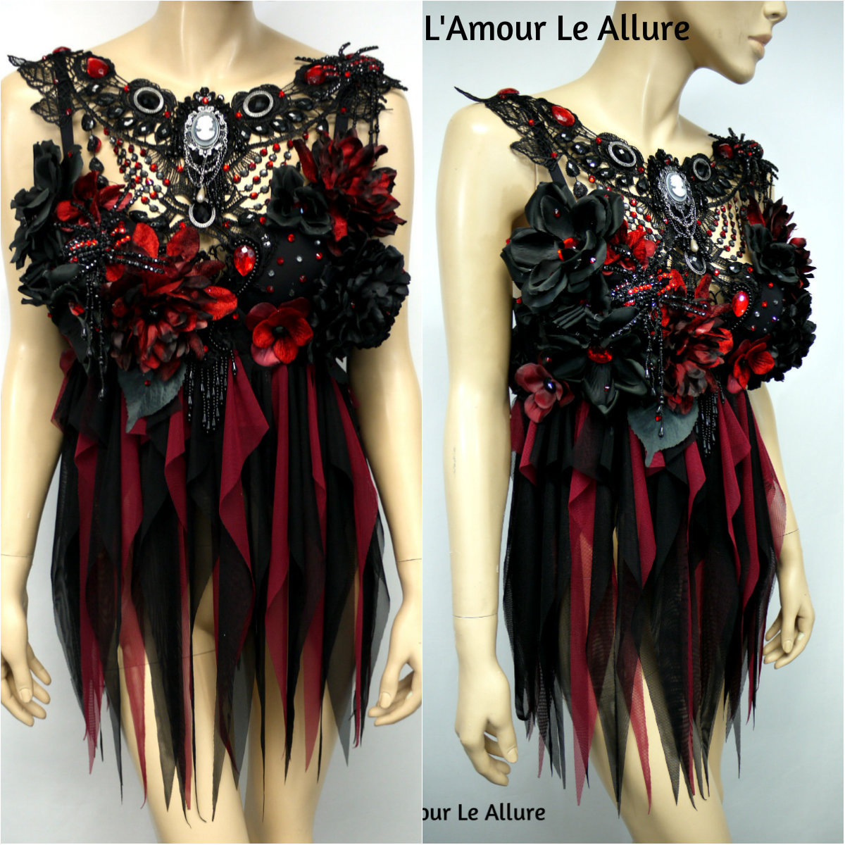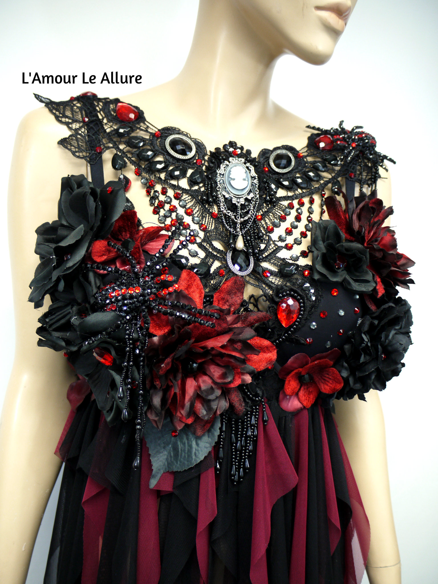 Burgundy Red and Black Goth Fairy Bra Babydoll Dress