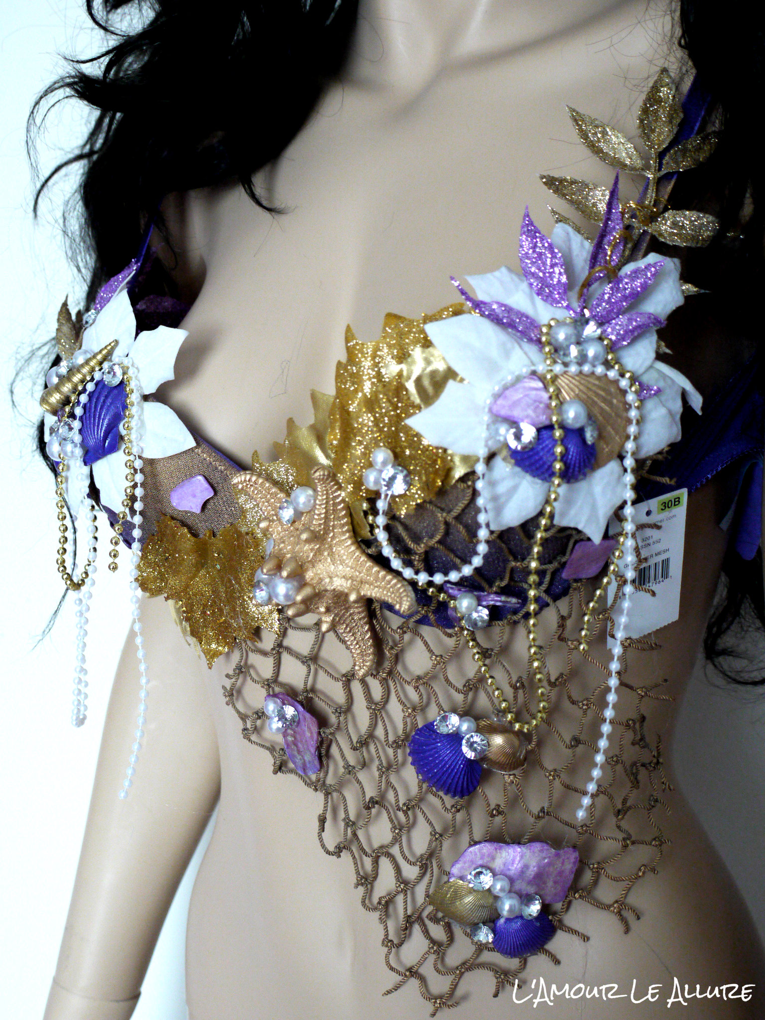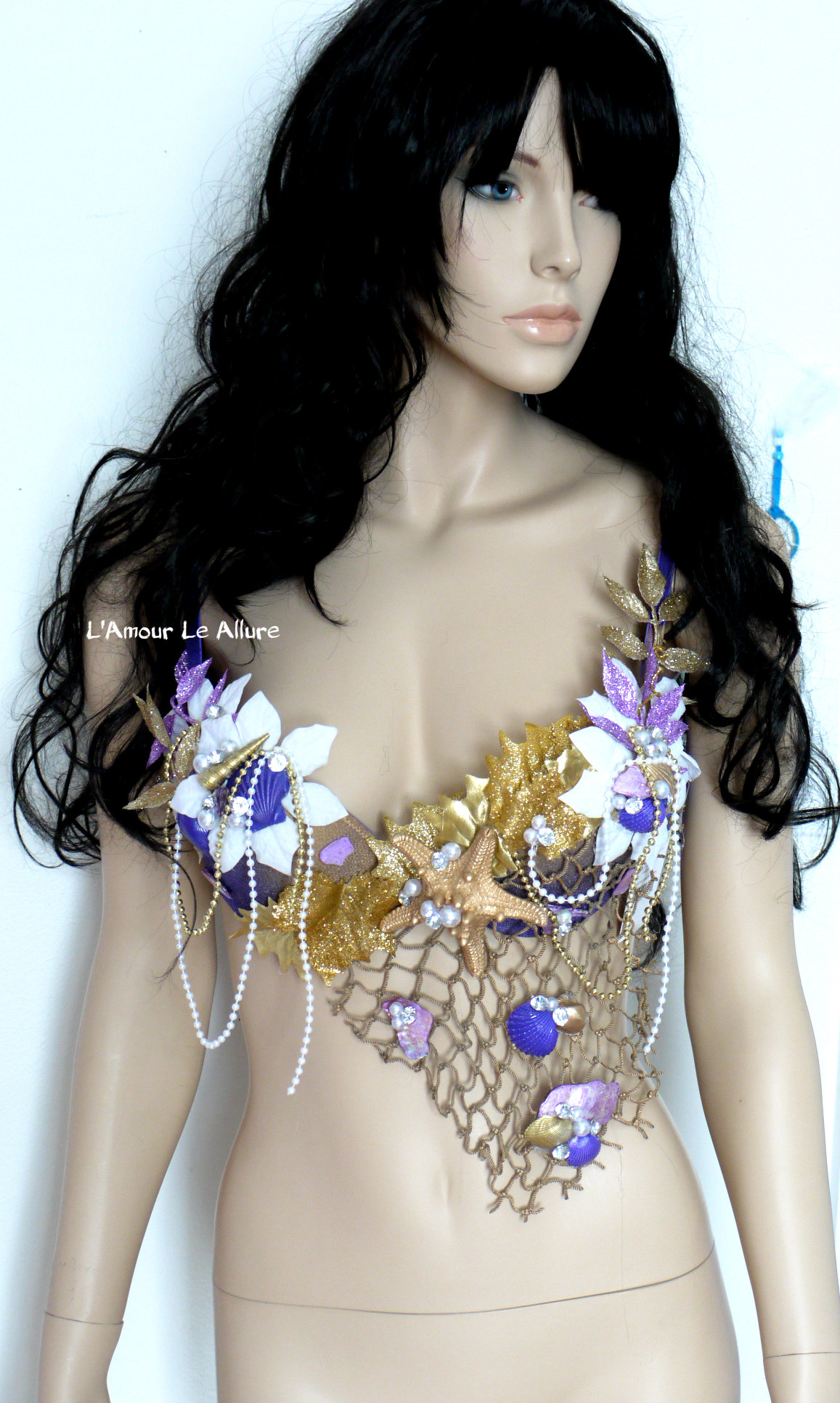 Dripping in Gold Purple Mermaid Bra Cosplay Dance Costume Rave Bra Rave Wear Halloween Burlesque Show Girl