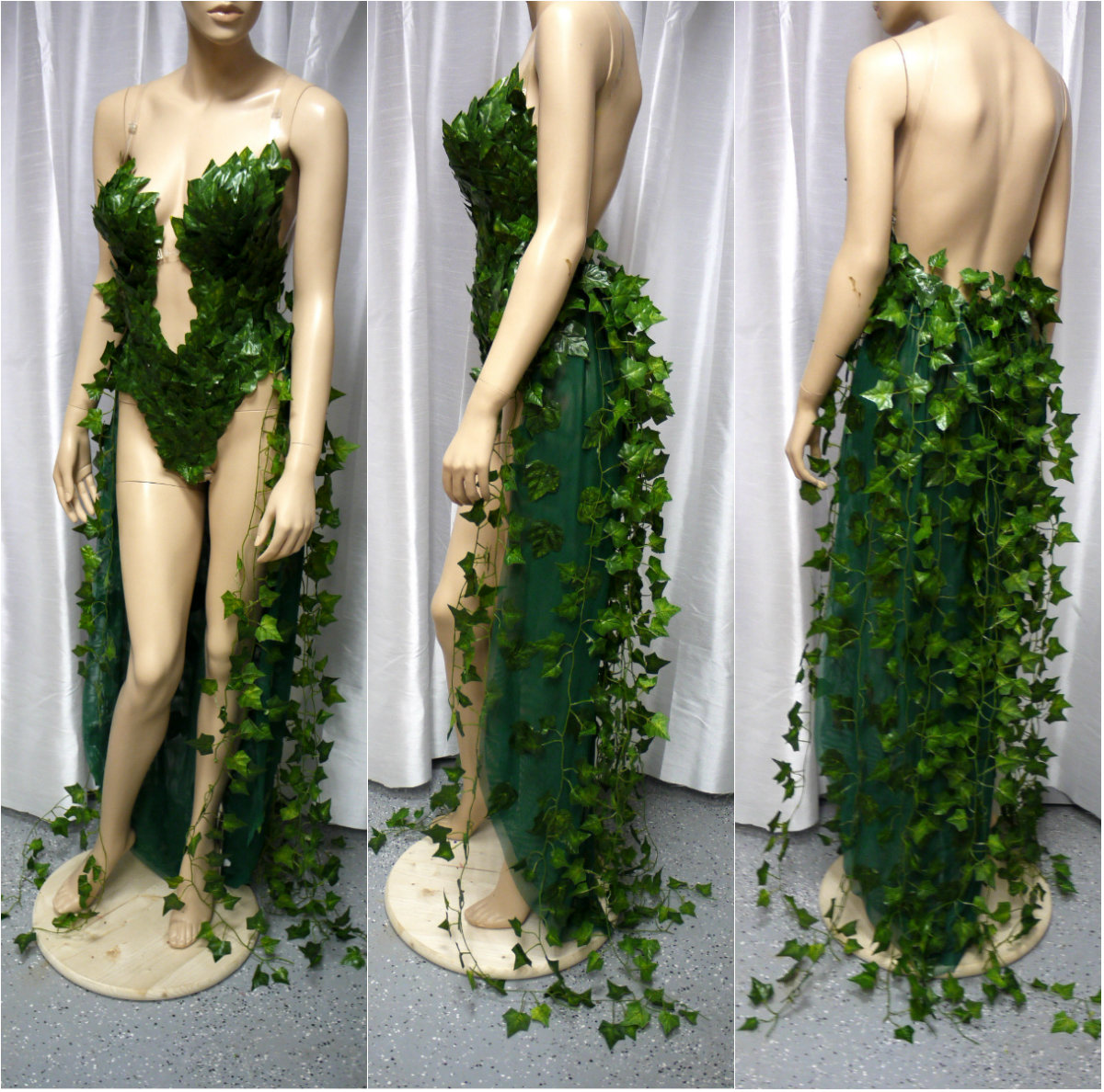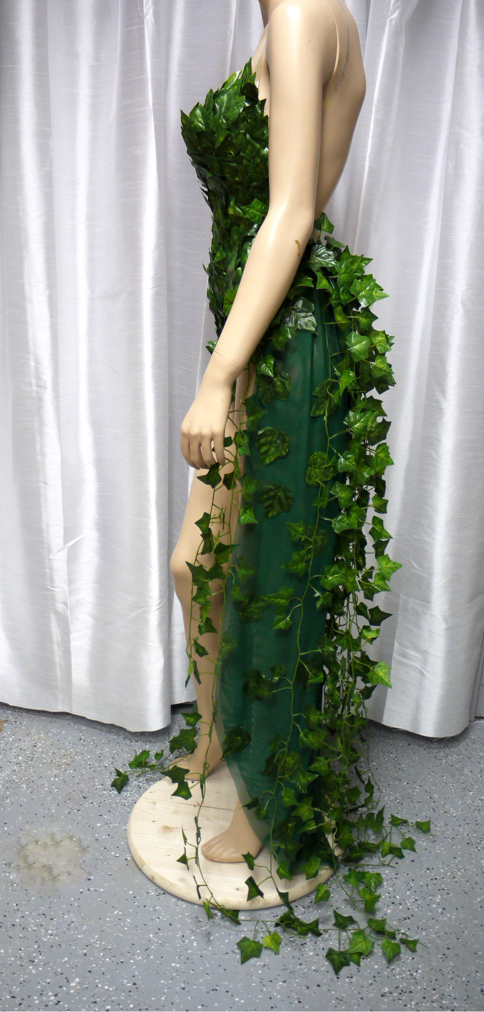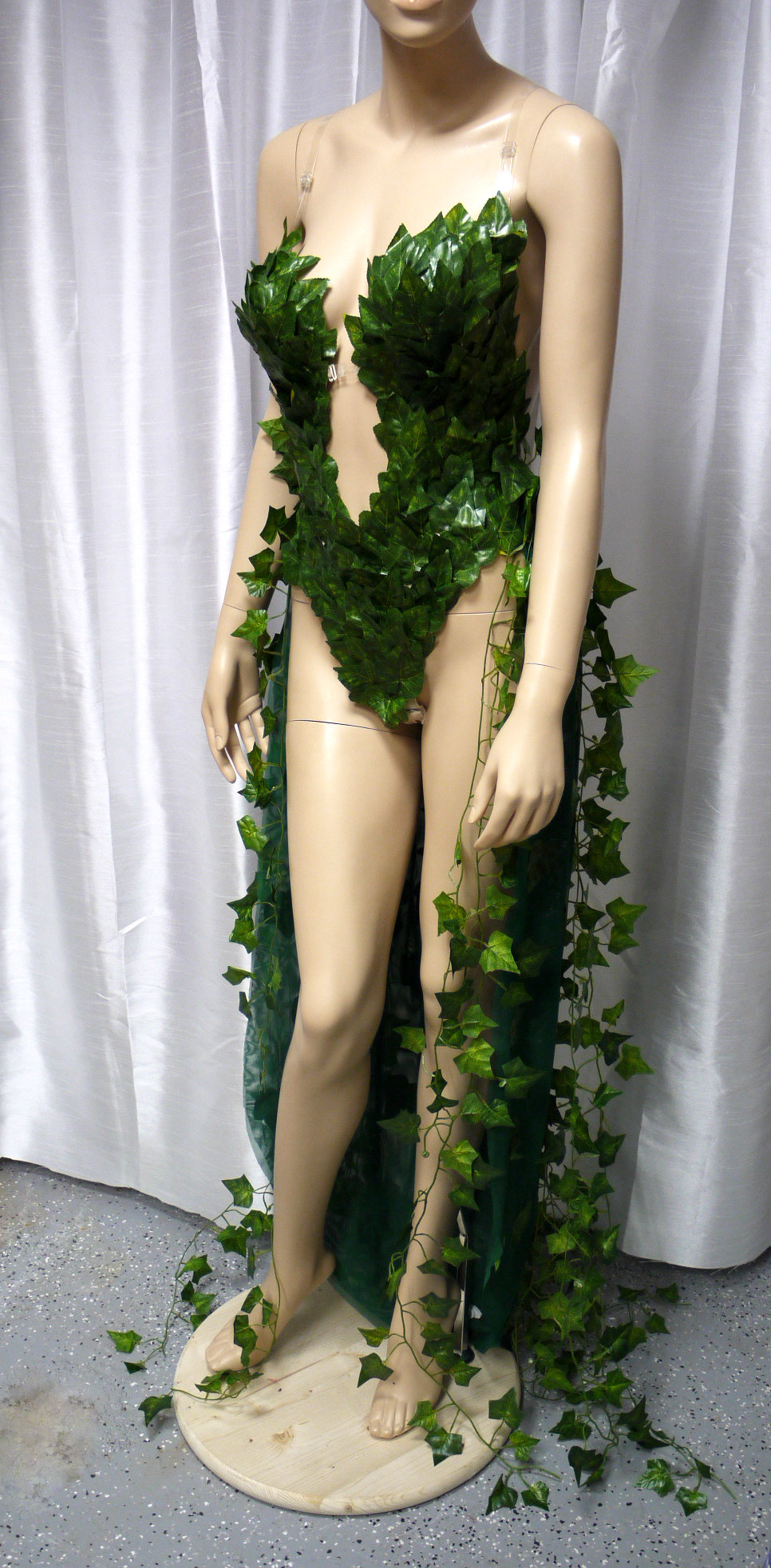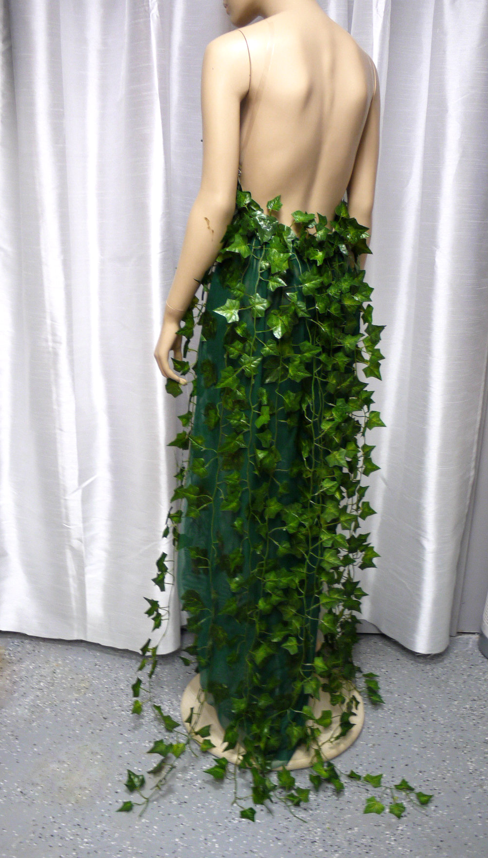 Poison Ivy Monokini Gown with Train Costume Cosplay Dance Costume Rave Bra Rave Wear Halloween Burlesque Show Girl