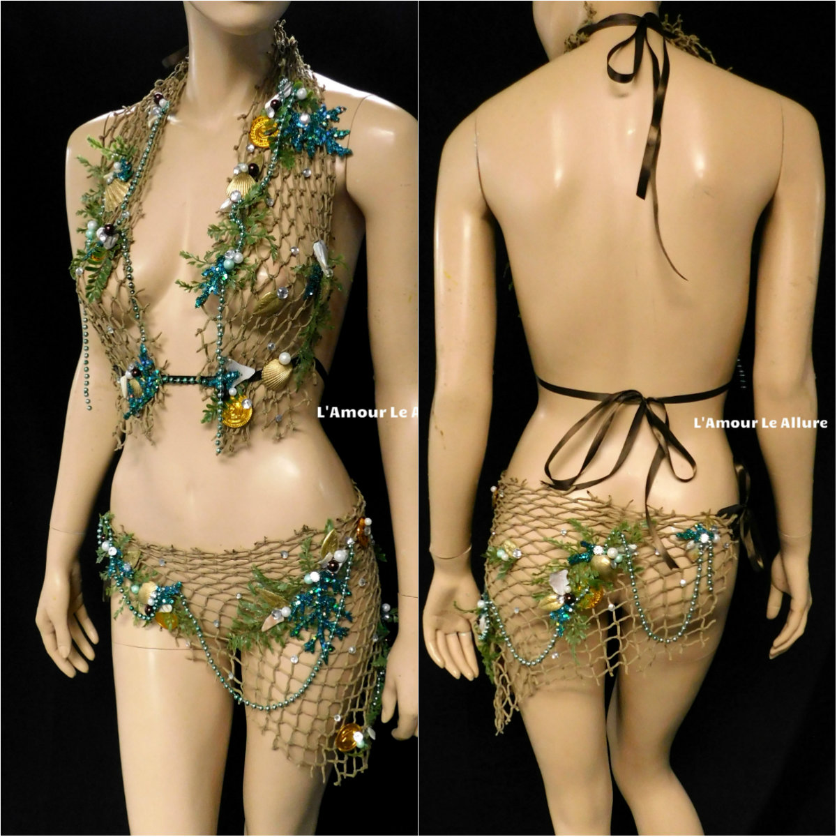 Sirens Of The Sea Green Mint Netted Siren Mermaid Halter Bra Top and skirt Dance Costume Rave Halloween